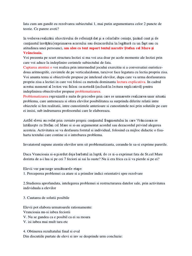 Textul Narativ Stefan Cel Mare Si Vrancioaia Palariile Si Problematizarea