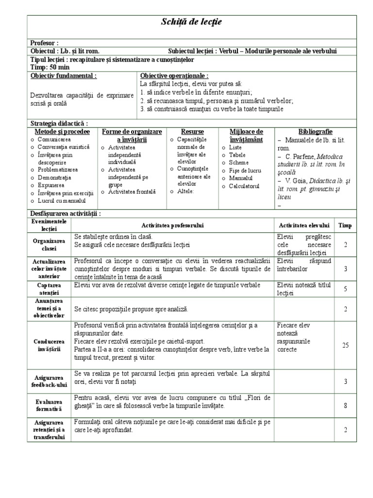 Schita De Lectie Model Cls A Via Verb