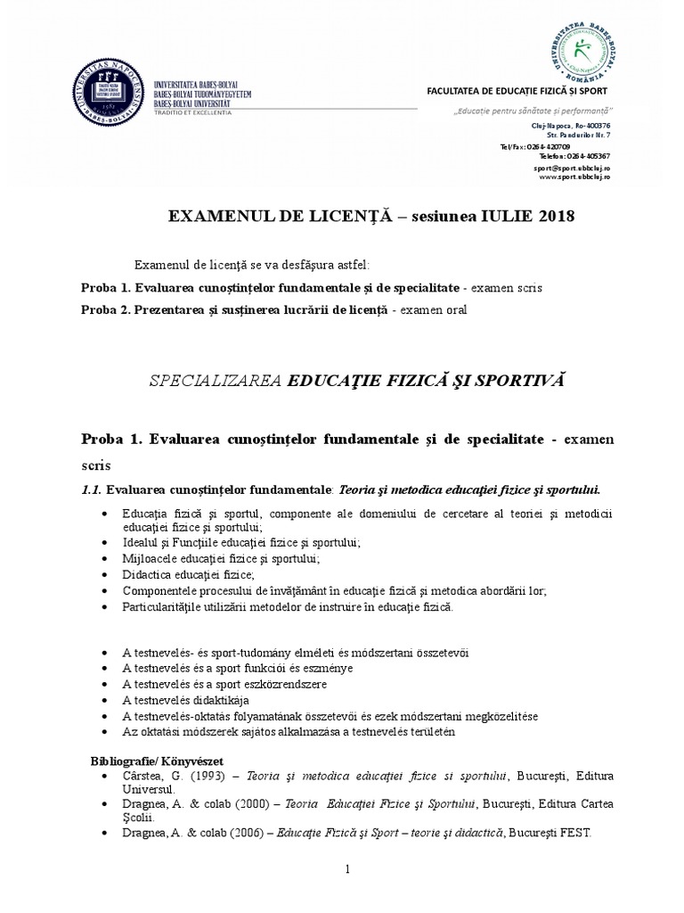 Probele Examenului De Licenta Iulie 2018 Tematica Si Bibliografie Hu V 2