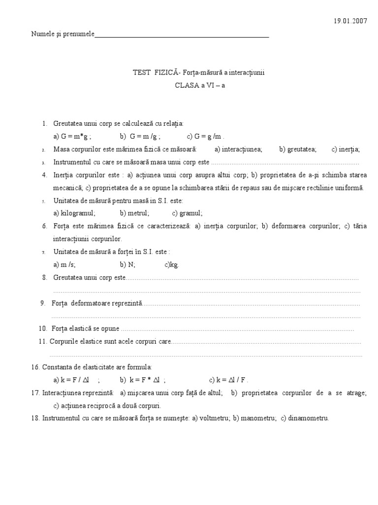Doc Test Initial Fizica Cls Vi Nina Stan Academia Edu