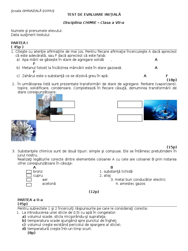 Va Rog Un Test Initial La Fizica Clasa 7 A Sem 1 Brainly Ro